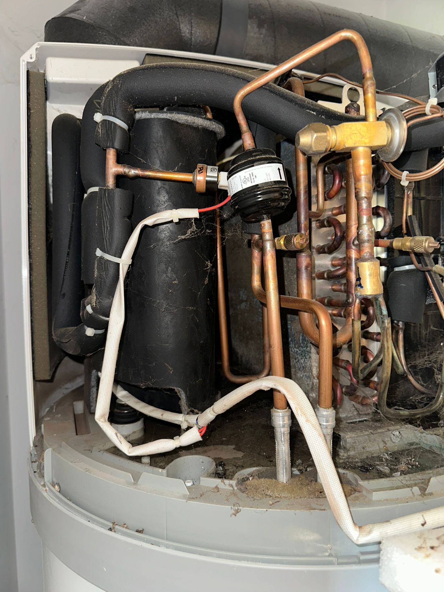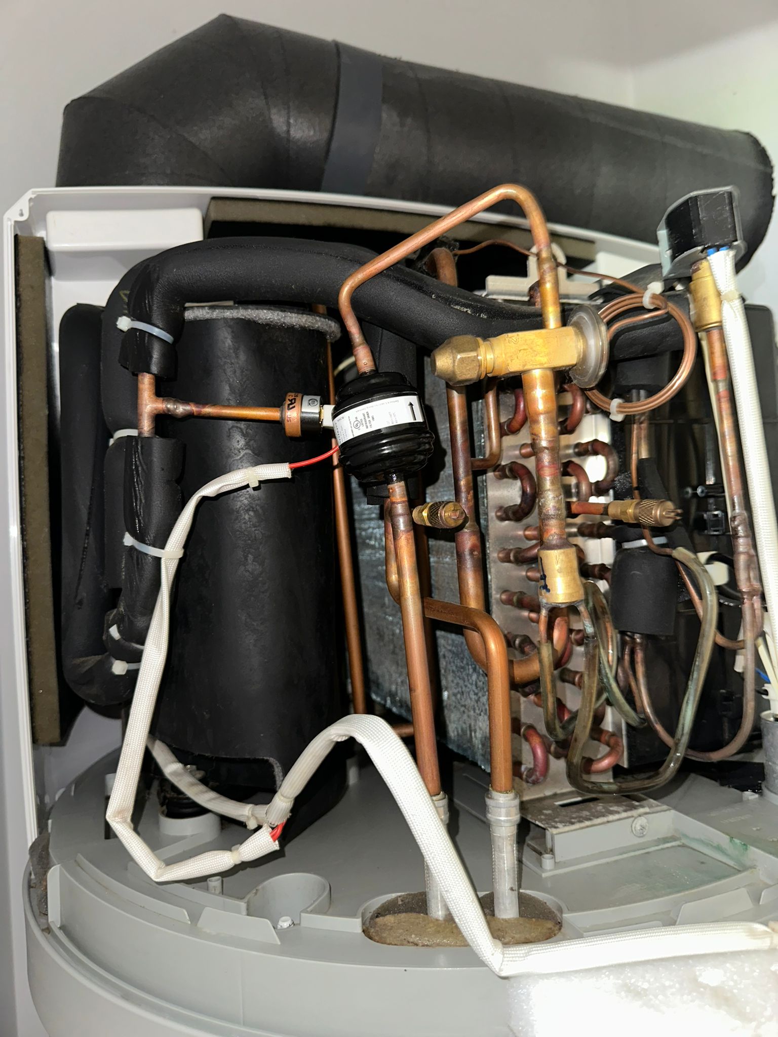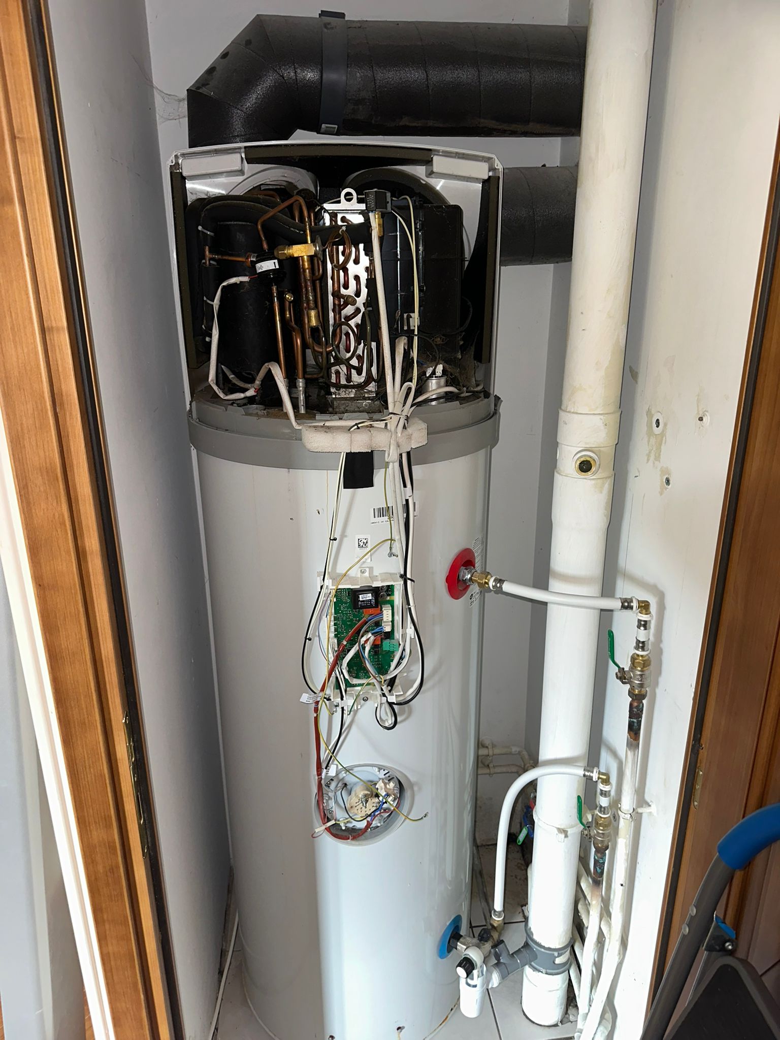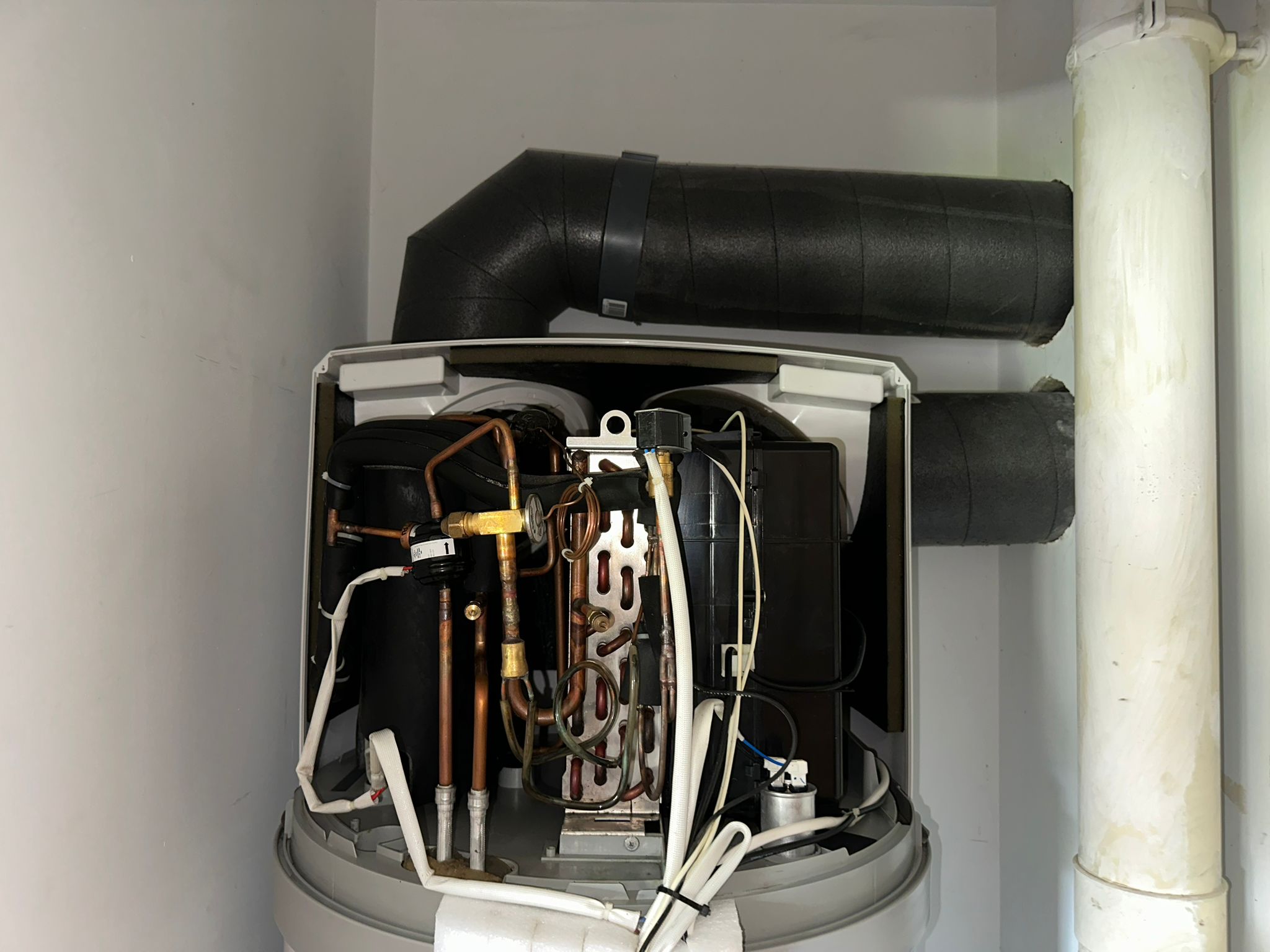 Nous sommes intervenus sur un ballon thermodynamique qui n’avait pas été entretenu depuis près de 5 ans. Le client constatait une baisse de performance et la présence d’eau sous l’appareil.